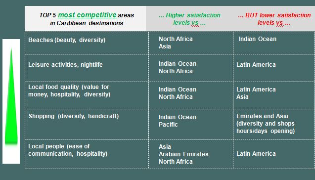 "Overall most of Caribbean destinations are able to provide superb beach experience, but other destinations can do it as well," TravelSat chief executive Olivier Henry-Biabaud told WPC. "So the challenge now is to make the difference on other aspects of the visit, especially those aspects visitors do not need to pay for but which drastically drive their intention to recommend or repeat visit."