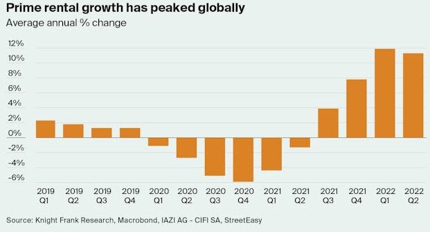 According to international property broker Knight Frank, growth in prime global rental markets appears to have peaked following months of rapid gains fueled by a substantial imbalance of supply relative to demand.