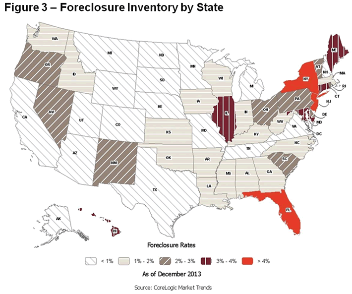 "The foreclosure inventory fell by more than 30 percent in December on a year-over-year basis, twice the decline from a year ago," said Mark Fleming, chief economist for CoreLogic. "The decline indicates that the distressed foreclosure inventory is healing at an accelerating rate heading into 2014."